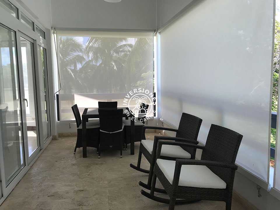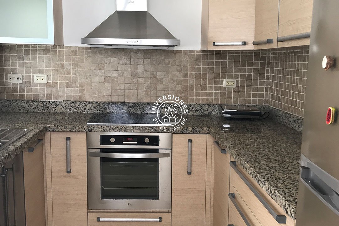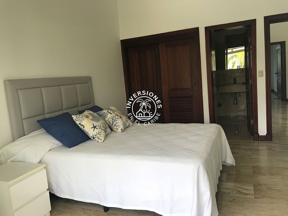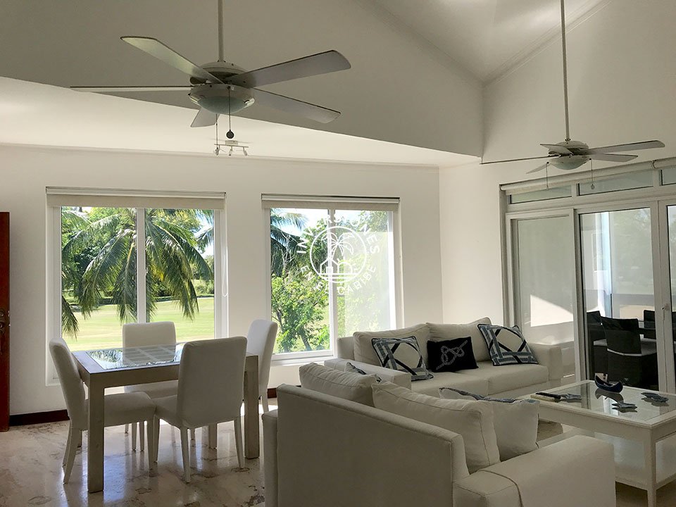 Amplio apartamento en segunda planta con vistas panorámicas al campo de golf. 3 habitaciones, 2 baños, sala, comedor, cocina, despensa, enorme terraza y una plaza de aparcamiento asignada. El apartamento está ubicado en uno de los mejores proyectos residenciales de todo Cocotal y cuenta con acabados de gran calidad. La terraza cuenta con permas enrollables para mayor privacidad, mesa comedor y sofás. Próximo a la entrada de Cocotal de la autovía. Las estancias están dotadas de abanico, aire acondicionado y mosquiteras en las ventanas y blackouts en los dormitorios. Vitrocerámica, horno eléctrico, nevera de gran capacidad y lavadora/secadora eléctrica de torre. Todo el apartamento es de mármol y las maderas son de caoba. En las áreas comunes cuenta con chaise lounges, piscina y jacuzzi. El complejo es tranquilo, ideal para quien quiere disfrutar del sosiego y vistas panorámicas al campo de golf. Renta mínima por un año. No se admiten mascotas.