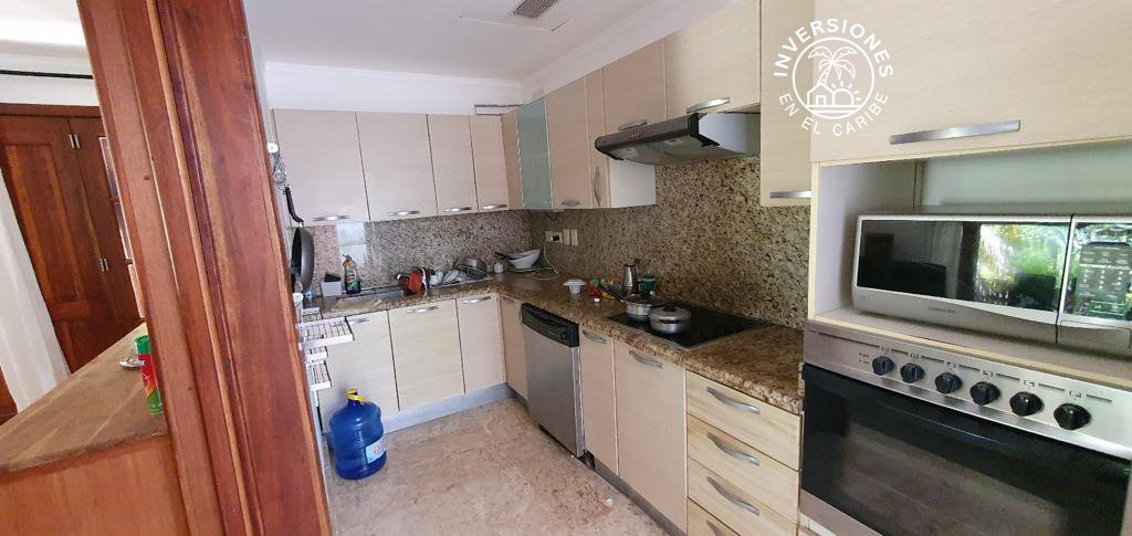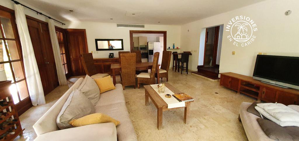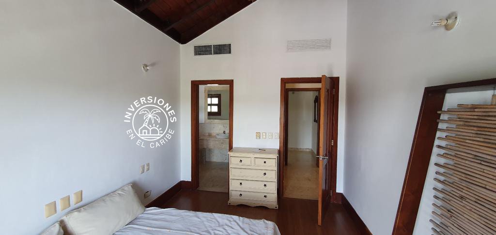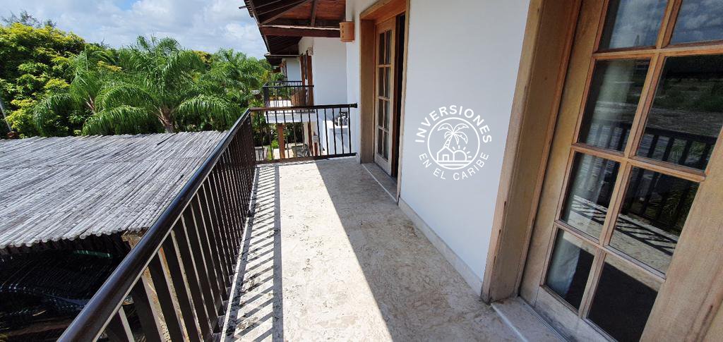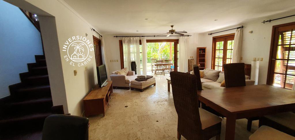 Acogedora villa pareada con vista al campo del golf con 3 habitaciones y 3 baños. Ventas y puertas en madera natural. Suelos de mármol. En la primera planta gran terraza frente al jardín y el campo de golf. No tiene piscina pero hay espacio suficiente en el jardín para hacerla. Jardín vallado. La villa está ubicada en el centro de Cocotal.